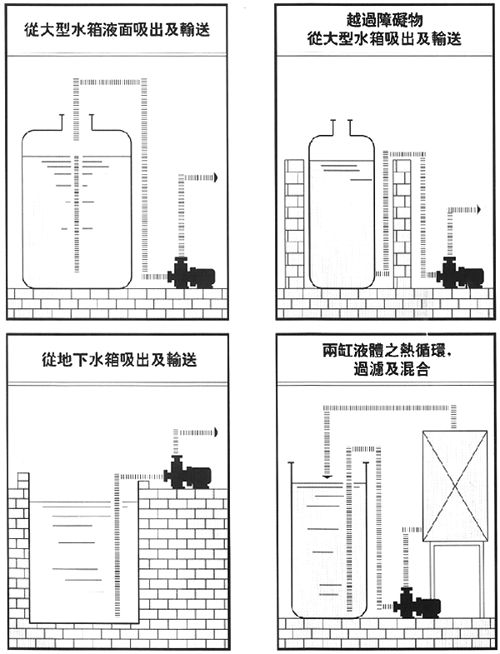 工作原理: ZCQ80-65-160磁力驅(qū)動自吸泵采用外混式軸向回水泵體結構,泵體由吸液室、儲液室、蝸殼、回流孔、氣液分離室等部份組成,結構見圖。泵啟動后,在離心力的作用下,吸水室中的剩余液與進液管路中的空氣被葉輪攪拌成氣水混合物,混合物經(jīng)蝸殼進入氣液分離室,隨著速度減慢,導致氣水分離,空氣由泵出液口排出,液經(jīng)回水孔返回泵內(nèi),經(jīng)過多次循環(huán),進液管道中的空氣被排凈,使泵內(nèi)形成一定的真空度,達到自吸的作用。 裝置實例: ![]() 自吸泵的安裝 一、開箱后檢查泵銘牌,校對自吸泵產(chǎn)品主要參數(shù)是否與使用要求相符。 二、自吸泵應水平安裝,泵體不得承受管路重量。 三、泵與管路應保持良好的密封。 自吸泵的使用 一、泵使用前應進行檢查、電機風葉轉(zhuǎn)動要靈活、無卡住及異聲現(xiàn)象,各緊固件要牢固。 二、擰開泵上方的加水螺栓,加入儲液水不少于泵體容積的三分之二,旋緊螺栓。 三、接上電源試轉(zhuǎn)一下,從電機端看,運轉(zhuǎn)是否與泵轉(zhuǎn)向標記一致。 四、泵停止工作前,先關閉排出閥門,再關閉電源,最后關閉吸入管閥門。 自吸泵使用應注意事項 1.因自吸泵軸承的冷卻和潤滑是靠被輸送的介質(zhì),所以絕對禁止空運轉(zhuǎn),同時避免在工作中途停電后再啟動時所造成時空載運轉(zhuǎn)。 2.被輸送介質(zhì)中,若含有固體顆粒,泵入口要加過濾網(wǎng):如含有鐵磁質(zhì)微粒,需加磁性過濾器。 3.泵在使用中環(huán)境溫度應小于40℃,電機溫升不得超過75℃。 4.被輸送的介質(zhì)及其溫度應在泵材允許的范圍內(nèi)。金屬泵的使用溫度<100℃,被輸送的介質(zhì)比重≤1.3;介質(zhì)比重<1.3時,將影響技術性能。 5.對于輸送液為易沉淀結晶的介質(zhì),使用后應及時清洗,排凈泵內(nèi)積液。 6.ZCQ80-65-160磁力驅(qū)動自吸泵運行500小時后,應拆檢軸承和端面動環(huán)的磨損情況,若軸承和軸套的間隙大于0.5~1mm,葉輪軸向竄動1.5~2mm時,應更換軸承和軸向動環(huán)。 因產(chǎn)品生產(chǎn)批次、型號不同,產(chǎn)品圖片及安裝尺寸僅供參考,詳情可聯(lián)系我們的銷售人員了解更多ZCQ80-65-160磁力驅(qū)動自吸泵相關信息!