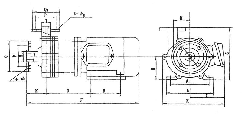 16CQ-8不銹鋼磁力驅(qū)動(dòng)泵 安裝尺寸表與示意圖