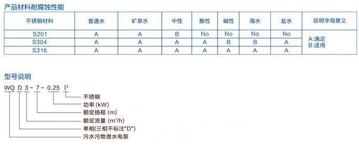 產(chǎn)品介紹 WQD7-3-0.25S 單相潛水排污泵產(chǎn)品概述: 1、WQ(D)-S系列全不銹鋼精密鑄造污水污物潛水電泵采用獨(dú)特的單、雙流道式葉輪結(jié)構(gòu),大大提高了污物的通過(guò)能力,根據(jù)產(chǎn)品型號(hào)能通 過(guò) 泵口徑 5倍的纖維與直徑約為泵出口口徑50%的固體顆粒。 2、采用氟橡膠雙端面機(jī)封,氟橡膠徑向O型圈密封,有效地對(duì)環(huán)境惡劣的液體進(jìn)行密封保護(hù)作用。 3、采用精密鑄造泵殼,重量輕、耐腐蝕、節(jié)能型、外形美觀、檢修方便,無(wú)需建泵房,潛入水中即可工作,減少工程造價(jià)。 4、電泵內(nèi)安裝過(guò)熱與電流保護(hù)器,防止電機(jī)過(guò)載發(fā)熱。 5、可根據(jù)客戶特殊要求定制防腐蝕電纜線、四氟機(jī)封,及高溫液體的零件配置。 WQD7-3-0.25S 單相潛水排污泵使用條件: 1、以葉輪中心為準(zhǔn),潛入水下深度不得超過(guò)5m。 2、輸送介質(zhì)溫度不高于60℃。 3、輸送介質(zhì)的PH值304(4-10),316(2-13). WQD7-3-0.25S 單相潛水排污泵產(chǎn)品用途: 適用于建筑樓宇、醫(yī)院、住宅小區(qū)、市政工程、道路交通及施工、工廠排污、養(yǎng)殖、藥業(yè)、飲料、海水鹽水、一般腐蝕性介質(zhì)中含有的固體顆粒、長(zhǎng)纖維廢水、污水。 WQD7-3-0.25S 單相潛水排污泵產(chǎn)品優(yōu)勢(shì): WQD系列污水污物潛水電泵采用獨(dú)特的單雙流道式葉輪結(jié)構(gòu),氟橡膠雙端面機(jī)封、氟橡膠O型圈密封,不銹鋼焊接轉(zhuǎn)子軸,以及不銹鋼精密鑄造外殼。其中,國(guó)標(biāo)法蘭系列采用雙端面、單端面雙套機(jī)封密封。該產(chǎn)品能有效地在惡劣的液體環(huán)境下工作,具有耐腐蝕、耐高溫等特點(diǎn)。特別適用于化糞池、化工液體、海水排澇等場(chǎng)合。 ![]() ![]() ![]() 因產(chǎn)品生產(chǎn)批次、型號(hào)不同,產(chǎn)品圖片及安裝尺寸僅供參考,詳情可聯(lián)系我們的銷售人員了解更多WQD7-3-0.25S 單相潛水排污泵相關(guān)信息!