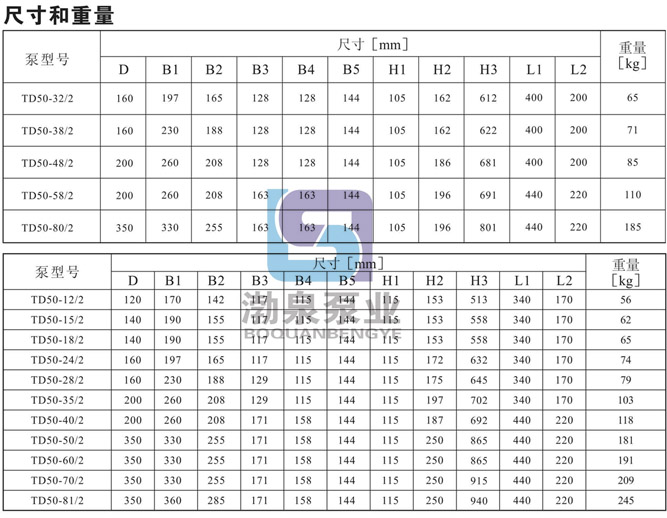 產(chǎn)品介紹 TD50-48/2SWHC 管道循環(huán)泵采用電機(jī)與泵可分離式結(jié)構(gòu),泵部分設(shè)計為可拉出形式。所有的該類產(chǎn)品都配有標(biāo)準(zhǔn)電機(jī)和機(jī)械密封。電機(jī)為全封閉、風(fēng)冷式標(biāo)準(zhǔn)電機(jī)。其主要尺寸符合JB/T8680標(biāo)準(zhǔn)。 產(chǎn)品泵體相當(dāng)于一段管路。在泵進(jìn)行維修時,可以用盲法蘭將泵體封堵,從而不影響系統(tǒng)的正常運(yùn)行。 產(chǎn)品的聯(lián)接法蘭尺寸符合GB/T17241.6或IS07005-2/DIN2501標(biāo)準(zhǔn)中PN16時的有關(guān)規(guī)定。 產(chǎn)品的進(jìn)出口直徑符合有關(guān)標(biāo)準(zhǔn)尺寸。 產(chǎn)品的泵頭是聯(lián)接電機(jī)和泵的裝置。其與泵體之間的密封件采用“〇”形圈。 TD50-48/2SWHC 管道循環(huán)泵配有標(biāo)準(zhǔn)電機(jī)和機(jī)械密封。此類產(chǎn)品的結(jié)構(gòu)與相近類型產(chǎn)品相比,更不易受到泵送液體中雜質(zhì)的影響。 產(chǎn)品設(shè)計為頂部可拉出的拆裝形式,其可以在不影響管路系統(tǒng)的情況下對泵進(jìn)行維護(hù)。 應(yīng)用 產(chǎn)品適宜在清潔、稀薄、非侵蝕、非易爆易燃,且不含有任何可能對泵造成機(jī)械或化學(xué)損害的固體顆粒和纖維的液體中使用。具體對液體要求及應(yīng)用如下;而在液體粘稠或密度較大情況下使用時會造成泵特性曲線的下降和能耗的增加。 液體溫度:-15℃~110℃ 系統(tǒng)最高壓力:常規(guī)型為PN12巴;特殊型為PN16巴。 TD50-48/2SWHC 管道循環(huán)泵產(chǎn)品在用于輸送水時,其可以用于生活用水、工業(yè)用水、冷卻系統(tǒng)用水和區(qū)域供熱系統(tǒng)的冷、熱用水。TD產(chǎn)品可以在以下位置使用: ·主循環(huán)泵 ·混合環(huán)路中的泵 ·鍋爐混流泵 ·燃?xì)饫鋬鰴C(jī)泵 ·部分流量過濾器泵 ·定壓系統(tǒng)用泵 ·生活熱水循環(huán) TD50-48/2SWHC 管道循環(huán)泵產(chǎn)品用于工業(yè)方面。如在化工、制藥、食品加工等行業(yè)??梢杂糜冢?/div> ·原料的輸送 ·系統(tǒng)增壓 ·混合環(huán)路循環(huán)泵 ![]() ![]() ![]() ![]() 因產(chǎn)品生產(chǎn)批次、型號不同,產(chǎn)品圖片及安裝尺寸僅供參考,詳情可聯(lián)系我們的銷售人員了解更多TD50-48/2SWHC 管道循環(huán)泵相關(guān)信息!