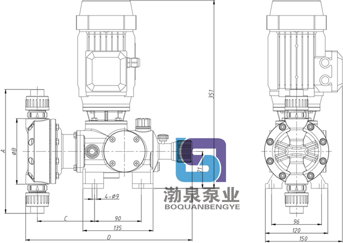 產(chǎn)品介紹 KD20/0.8 不銹鋼機械隔膜式計量泵產(chǎn)品介紹 流量范圍:0-180 L/H 壓力范圍: 0-0.8 MPA 電機功率: 180W,220V / 380V / 420V , 50/60Hz 驅(qū)動系統(tǒng): 兩相、三相標(biāo)準(zhǔn)電機或防爆電機 流量控制: 手動控制, 防護等級: IP55 材料 泵頭: SUS304, SUS316, PVC, PTFE 隔膜: PTFE 單向閥: SUS304, SUS316, PVC, PTFE 閥球: ZrO2, SUS304, SUS316, 陶瓷 工作條件 環(huán)境溫度: -30℃ --- 80℃ 計量泵技術(shù)參數(shù)