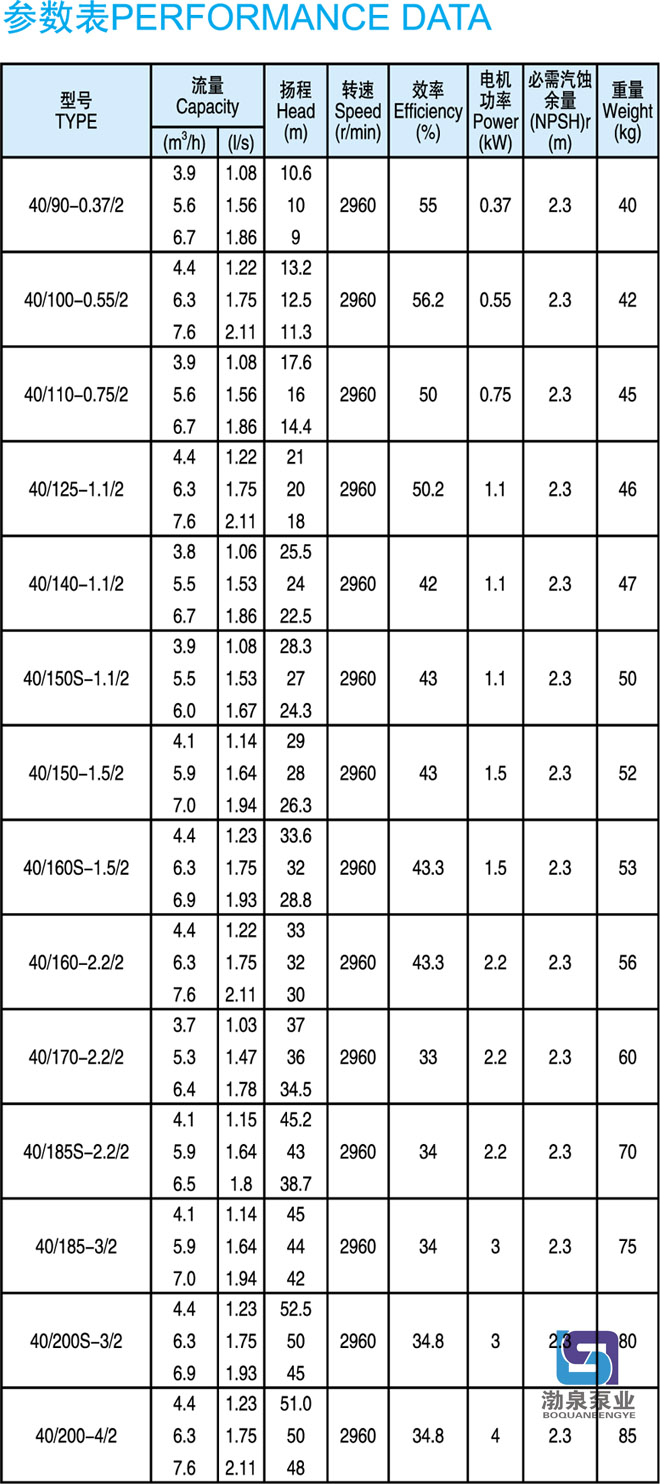 產(chǎn)品介紹 KQL40/110-0.75/2 立式單級(jí)單吸離心泵供輸送不含固體顆粒的清水及物理化學(xué)性質(zhì)類(lèi)似于水的液體之用。同時(shí)根據(jù)使用溫度、介質(zhì)等不同在ISG型管道離心泵基礎(chǔ)上派出適用熱水、高溫、腐蝕性化工泵、油泵。該產(chǎn)品具有同效節(jié)能、噪音低、性能穩(wěn)定等特點(diǎn)。 用途: KQL40/110-0.75/2 立式單級(jí)單吸離心泵用于空調(diào)、采暖、衛(wèi)生用水、水處理冷卻冷凍系統(tǒng)、液體循環(huán)和供水、增壓及灌溉等領(lǐng)域中無(wú)腐蝕的冷水和熱水輸送。 工作條件: 轉(zhuǎn)速:2960r/min,1480r/min或980r/min 流量范圍:1.8~2000m3/h 揚(yáng)程:≤127m 介質(zhì)溫度:-10℃~120℃ 環(huán)境溫度:最大+40℃;海拔高度小于1000m;相對(duì)濕度不超過(guò)95% 材質(zhì): 泵殼、泵蓋、葉輪:鑄鐵 泵軸:45#鋼鍍鉻或不銹鋼(2Cr13) 機(jī)械密封動(dòng)、靜環(huán):浸銻石墨、碳化硅 結(jié)構(gòu):結(jié)構(gòu)緊湊的單級(jí)泵,適用于現(xiàn)代建筑物。 產(chǎn)品特點(diǎn): KQL40/110-0.75/2 立式單級(jí)單吸離心泵結(jié)構(gòu)緊湊、合理,泵與電機(jī)直接連接,外形美觀,占地面積小效率高,閉式鑄鐵葉輪,葉輪懸臂短,機(jī)泵軸完全同心,泵運(yùn)行平穩(wěn)、可靠,噪音低壽命長(zhǎng),強(qiáng)制環(huán)流沖洗機(jī)械密封,免保養(yǎng)、無(wú)滲漏。 管道泵選型指南: 例如:KQL80/160-7.5/2 或KQW80/160-7.5 KQL標(biāo)準(zhǔn)立式單級(jí)離心泵,KQW標(biāo)準(zhǔn)臥式單級(jí)離心泵 80進(jìn)出口直徑 160葉輪名義直徑 7.5/2電機(jī)功率/電機(jī)極數(shù) ![]() ![]() 因產(chǎn)品生產(chǎn)批次、型號(hào)不同,產(chǎn)品圖片及安裝尺寸僅供參考,詳情可聯(lián)系我們的銷(xiāo)售人員了解更多KQL40/110-0.75/2 立式單級(jí)單吸離心泵相關(guān)信息!