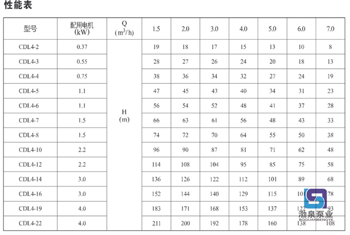 產(chǎn)品介紹 CDLF4-12FSWSC 立式不銹鋼多級管道泵是一種多功能產(chǎn)品,可以輸送從自來水到工業(yè)液體的各種不同介質(zhì),適應(yīng)于不同溫度、流量和壓力范圍,CDL不銹鋼多級泵適用于無腐蝕性液體,CDLF適用于輕度腐蝕性液體。 水:水廠過濾與輸送、水廠分區(qū)送水、主管增壓、高層建筑增壓。 工業(yè)增壓:流程水系統(tǒng)、清洗系統(tǒng)、高壓沖洗系統(tǒng)、消防系統(tǒng)。 工業(yè)液體輸送:冷卻和空調(diào)系統(tǒng)、鍋爐給水和冷凝系統(tǒng)、機床配套、酸和堿。 水處理:超濾系統(tǒng)、反滲透系統(tǒng)、蒸餾系統(tǒng)、分離器、游泳池。 灌溉:農(nóng)田灌溉、噴灌、滴灌。 運行條件 稀薄、干凈、非易燃易爆并不含固體顆粒或纖維的液體。 液體溫度:常溫型 -15℃至+70℃ 熱水型 -15℃至+120℃ 環(huán)境溫度:最高+40℃ 海拔:最高1000m CDLF4-12FSWSC 立式不銹鋼多級管道泵為安裝標(biāo)準(zhǔn)電機的非自吸式多級離心泵,電機軸通過泵頭用軸聯(lián)器直接與泵軸連接,拉桿螺栓將耐壓筒、過流部件固定在泵頭和進出水段之間,泵進出水口在泵底同一直線上;本泵可根據(jù)需要配置智能保護器,對泵干轉(zhuǎn)、缺相、過載等進行有效保護。 電機 電機為全封閉,風(fēng)冷式二極標(biāo)準(zhǔn)電機。 防護等級:IP55 絕緣等級:F 標(biāo)準(zhǔn)電壓, 50Hz ![]() ![]() 因產(chǎn)品生產(chǎn)批次、型號不同,產(chǎn)品圖片及安裝尺寸僅供參考,詳情可聯(lián)系我們的銷售人員了解更多CDLF4-12FSWSC 立式不銹鋼多級管道泵相關(guān)信息!
