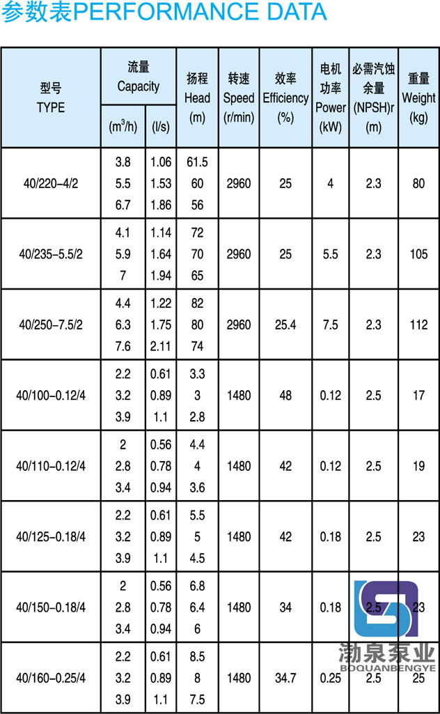 產(chǎn)品介紹 KQL40/250-7.5/2 立式管道離心泵供輸送不含固體顆粒的清水及物理化學(xué)性質(zhì)類似于水的液體之用。同時根據(jù)使用溫度、介質(zhì)等不同在ISG型管道離心泵基礎(chǔ)上派出適用熱水、高溫、腐蝕性化工泵、油泵。該產(chǎn)品具有同效節(jié)能、噪音低、性能穩(wěn)定等特點。 用途: KQL40/250-7.5/2 立式管道離心泵用于空調(diào)、采暖、衛(wèi)生用水、水處理冷卻冷凍系統(tǒng)、液體循環(huán)和供水、增壓及灌溉等領(lǐng)域中無腐蝕的冷水和熱水輸送。 工作條件: 轉(zhuǎn)速:2960r/min,1480r/min或980r/min 流量范圍:1.8~2000m3/h 揚程:≤127m 介質(zhì)溫度:-10℃~120℃ 環(huán)境溫度:最大+40℃;海拔高度小于1000m;相對濕度不超過95% 材質(zhì): 泵殼、泵蓋、葉輪:鑄鐵 泵軸:45#鋼鍍鉻或不銹鋼(2Cr13) 機(jī)械密封動、靜環(huán):浸銻石墨、碳化硅 結(jié)構(gòu):結(jié)構(gòu)緊湊的單級泵,適用于現(xiàn)代建筑物。 產(chǎn)品特點: KQL40/250-7.5/2 立式管道離心泵結(jié)構(gòu)緊湊、合理,泵與電機(jī)直接連接,外形美觀,占地面積小效率高,閉式鑄鐵葉輪,葉輪懸臂短,機(jī)泵軸完全同心,泵運行平穩(wěn)、可靠,噪音低壽命長,強(qiáng)制環(huán)流沖洗機(jī)械密封,免保養(yǎng)、無滲漏。 管道泵選型指南: 例如:KQL80/160-7.5/2 或KQW80/160-7.5 KQL標(biāo)準(zhǔn)立式單級離心泵,KQW標(biāo)準(zhǔn)臥式單級離心泵 80進(jìn)出口直徑 160葉輪名義直徑 7.5/2電機(jī)功率/電機(jī)極數(shù) ![]() ![]() 因產(chǎn)品生產(chǎn)批次、型號不同,產(chǎn)品圖片及安裝尺寸僅供參考,詳情可聯(lián)系我們的銷售人員了解更多KQL40/250-7.5/2 立式管道離心泵相關(guān)信息!