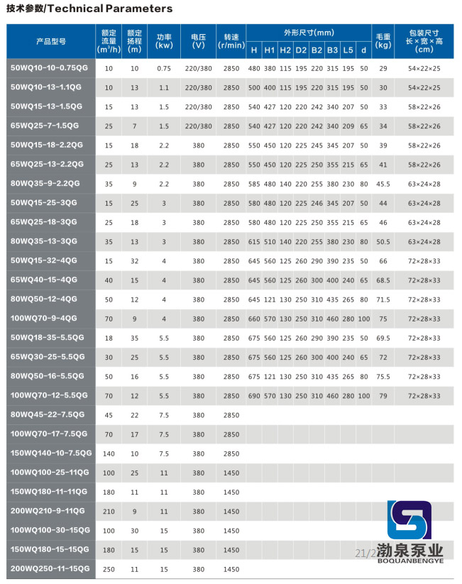 200WQ210-9-11QG 無堵塞切割潛污泵 |