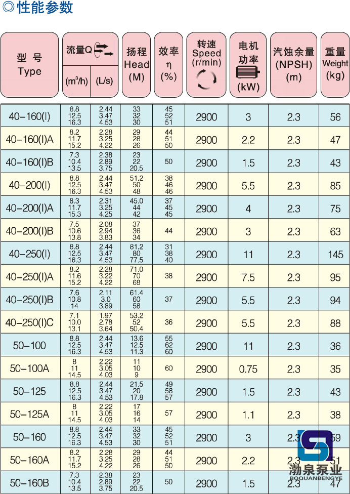產(chǎn)品介紹 ISWR40-200(I)A 臥式熱水管道泵是采用IS型離心泵之性能參數(shù),在一般臥式泵的基礎(chǔ)上進行巧妙組合設(shè)計而成,同時根據(jù)使用溫度、介質(zhì)等不同在ISW型管道泵基礎(chǔ)上派生出適用熱水泵、高溫、耐腐蝕化工泵、油泵。該系列產(chǎn)品具有高效節(jié)能、噪音低、性能可靠等優(yōu)點,符合JB/T53058-93的標準要求,產(chǎn)品按ISO2858標準設(shè)計制造。具有效率高、流量及揚程范圍大、結(jié)構(gòu)合理、成本低、壽命長、占地面積小、安裝維修方便等特點。是替代IS、DL等常規(guī)產(chǎn)品的新離心泵,特別適用于高層建筑的給排水、噴灌、冶金、市政、礦山水處理排污,食品、化工、空調(diào)及其他行業(yè)輸送水、化學介質(zhì)及其他液體。 ISWR40-200(I)A 臥式熱水管道泵流量范圍15~1200m3 /h,分基本型、擴流型、A、B、C切割型等250多種規(guī)格,并根據(jù)流體介質(zhì)和溫度不同又派生出清水泵、熱水泵、化工泵、防爆油泵、防爆化工泵等系列產(chǎn)品。 主要用途 1、ISW臥式清水泵供輸送清水及物理化學性質(zhì)類似于清水的其它液體之用,適用于工業(yè)和城市給排水、高層建筑增壓送水、園林噴灌、消防增壓、遠距離輸送、暖通制冷循環(huán)、浴室等冷暖水循環(huán)增壓及設(shè)備配套,使用溫度T≤80℃。 2、ISWR臥式熱水泵,廣泛適用于:冶金、化工、紡織、造紙以及賓館飯店等鍋爐熱水增壓循環(huán)輸送及城市采暖系統(tǒng),ISWR型使用溫度T≤120℃。 3、ISWH臥式化工泵,供輸送不含固體顆粒,具有腐蝕性。粘度類似于水的液體,適用于石油、化工、冶金、電力、造紙、食品、制藥和合成纖維等部門,使用溫度為-20℃~+120℃。 4、ISWY臥式管道油泵,供輸送汽油、煤油、柴油等油類產(chǎn)品或易燃、易爆液體,被輸送介質(zhì)溫度為-20℃~120℃。 5、ISWHY型臥式不銹鋼防爆化工離心泵,適用于輸送易燃性化工液體。 6、ISWD臥式低轉(zhuǎn)速泵,適應(yīng)要求環(huán)境噪聲很低的場合,使用溫度T≤120℃。 ISWR40-200(I)A 臥式熱水管道泵工作條件 1.吸入壓力≤1.0MPa,或泵系統(tǒng)最高工作壓力≤1.6MPa,即吸入口壓力+泵揚程≤1.6MPa、泵靜壓試驗壓力為≤2.5MPa,訂貨時請注明系統(tǒng)工作壓力。泵系統(tǒng)工作壓力大于1.6MPa時應(yīng)在訂貨時另行提出,以便在制造時泵的過流部分和聯(lián)接部分采用鑄鋼材料。 2.環(huán)境溫度<40℃,相對濕度<40%。 3.所輸送介質(zhì)中固體顆粒體積含量不超過單位體積的0.1,粒度<0.2mm。 注:如果用介質(zhì)為帶有細小顆粒,請在訂貨時說明,以便廠家采用耐磨式機械密封。 產(chǎn)品特點 運行平穩(wěn):泵軸的絕對同心度及葉輪優(yōu)異的動靜平衡,保證平穩(wěn)運行,絕無振動。 滴水不漏:不同材質(zhì)的硬質(zhì)合金密封,保證了不同介質(zhì)輸送均無泄漏。 噪音低:兩個低噪音軸承支撐下的水泵,運轉(zhuǎn)平穩(wěn),除電機微弱聲響,基本無噪音。 故障率低:結(jié)構(gòu)簡單合理,關(guān)鍵部分采用品質(zhì)配套,整機無故障工作時間大大提高。 維修方便:更換密封、軸承,簡易方便。 占地更?。撼隹诳上蜃?、向右、向上三個方向,便于管道布置安裝,節(jié)省空間。 ![]() ![]() ![]() 因產(chǎn)品生產(chǎn)批次、型號不同,產(chǎn)品圖片及安裝尺寸僅供參考,詳情可聯(lián)系我們的銷售人員了解更多ISWR40-200(I)A 臥式熱水管道泵相關(guān)信息!