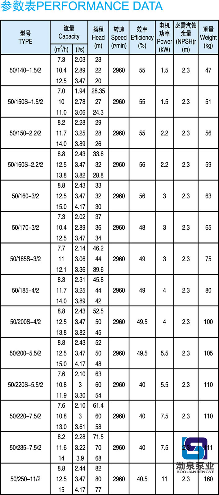 產(chǎn)品介紹 KQL50/160-3/2 立式單級離心泵供輸送不含固體顆粒的清水及物理化學(xué)性質(zhì)類似于水的液體之用。同時根據(jù)使用溫度、介質(zhì)等不同在ISG型管道離心泵基礎(chǔ)上派出適用熱水、高溫、腐蝕性化工泵、油泵。該產(chǎn)品具有同效節(jié)能、噪音低、性能穩(wěn)定等特點(diǎn)。 用途: KQL50/160-3/2 立式單級離心泵用于空調(diào)、采暖、衛(wèi)生用水、水處理冷卻冷凍系統(tǒng)、液體循環(huán)和供水、增壓及灌溉等領(lǐng)域中無腐蝕的冷水和熱水輸送。 工作條件: 轉(zhuǎn)速:2960r/min,1480r/min或980r/min 流量范圍:1.8~2000m3/h 揚(yáng)程:≤127m 介質(zhì)溫度:-10℃~120℃ 環(huán)境溫度:最大+40℃;海拔高度小于1000m;相對濕度不超過95% 材質(zhì): 泵殼、泵蓋、葉輪:鑄鐵 泵軸:45#鋼鍍鉻或不銹鋼(2Cr13) 機(jī)械密封動、靜環(huán):浸銻石墨、碳化硅 結(jié)構(gòu):結(jié)構(gòu)緊湊的單級泵,適用于現(xiàn)代建筑物的。 產(chǎn)品特點(diǎn): KQL50/160-3/2 立式單級離心泵結(jié)構(gòu)緊湊、合理,泵與電機(jī)直接連接,外形美觀,占地面積小效率高,閉式鑄鐵葉輪,葉輪懸臂短,機(jī)泵軸完全同心,泵運(yùn)行平穩(wěn)、可靠,噪音低壽命長,強(qiáng)制環(huán)流沖洗機(jī)械密封,免保養(yǎng)、無滲漏。 管道泵選型指南: 例如:KQL80/160-7.5/2 或KQW80/160-7.5 KQL標(biāo)準(zhǔn)立式單級離心泵,KQW標(biāo)準(zhǔn)臥式單級離心泵 80進(jìn)出口直徑 160葉輪名義直徑 7.5/2電機(jī)功率/電機(jī)極數(shù) ![]() ![]() 因產(chǎn)品生產(chǎn)批次、型號不同,產(chǎn)品圖片及安裝尺寸僅供參考,詳情可聯(lián)系我們的銷售人員了解更多KQL50/160-3/2 立式單級離心泵相關(guān)信息!