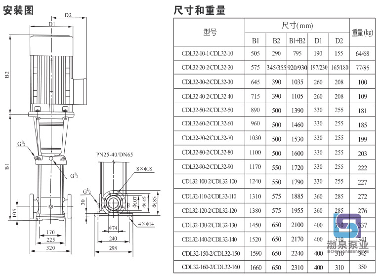 產(chǎn)品介紹 CDLF32-60FSWSC 不銹鋼立式多級離心泵是一種多功能產(chǎn)品,可以輸送從自來水到工業(yè)液體的各種不同介質(zhì),CDLF32-60FSWSC 不銹鋼立式多級離心泵適應(yīng)于不同溫度、流量和壓力范圍,CDL不銹鋼多級泵適用于無腐蝕性液體,CDLF適用于輕度腐蝕性液體。 水:水廠過濾與輸送、水廠分區(qū)送水、主管增壓、高層建筑增壓。 工業(yè)增壓:流程水系統(tǒng)、清洗系統(tǒng)、高壓沖洗系統(tǒng)、消防系統(tǒng)。 工業(yè)液體輸送:冷卻和空調(diào)系統(tǒng)、鍋爐給水和冷凝系統(tǒng)、機床配套、酸和堿。 水處理:超濾系統(tǒng)、反滲透系統(tǒng)、蒸餾系統(tǒng)、分離器、游泳池。 灌溉:農(nóng)田灌溉、噴灌、滴灌。 運行條件 稀薄、干凈、非易燃易爆并不含固體顆?;蚶w維的液體。 液體溫度:常溫型 -15℃至+70℃ 熱水型 -15℃至+120℃ 環(huán)境溫度:最高+40℃ 海拔:最高1000m CDLF32-60FSWSC 不銹鋼立式多級離心泵為安裝標準電機的非自吸式多級離心泵,電機軸通過泵頭用軸聯(lián)器直接與泵軸連接,拉桿螺栓將耐壓筒、過流部件固定在泵頭和進出水段之間,泵進出水口在泵底同一直線上;這款管道泵可根據(jù)需要配置智能保護器,對泵干轉(zhuǎn)、缺相、過載等進行有效保護。 電機 電機為全封閉,風(fēng)冷式二極標準電機。 防護等級:IP55 絕緣等級:F 標準電壓, 50Hz ![]() 因產(chǎn)品生產(chǎn)批次、型號不同,產(chǎn)品圖片及安裝尺寸僅供參考,詳情可聯(lián)系我們的銷售人員了解更多CDLF32-60FSWSC 不銹鋼立式多級離心泵相關(guān)信息!