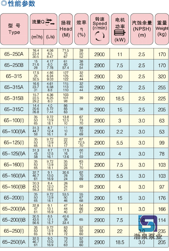 產(chǎn)品介紹 ISW65-315B 臥式熱水輸送泵是采用IS型離心泵之性能參數(shù),在一般臥式泵的基礎(chǔ)上進(jìn)行巧妙組合設(shè)計而成,同時根據(jù)使用溫度、介質(zhì)等不同在ISW型管道泵基礎(chǔ)上派生出適用熱水泵、高溫、耐腐蝕化工泵、油泵。該系列產(chǎn)品具有高效節(jié)能、噪音低、性能可靠等優(yōu)點(diǎn),符合JB/T53058-93的標(biāo)準(zhǔn)要求,產(chǎn)品按ISO2858標(biāo)準(zhǔn)設(shè)計制造。具有效率高、流量及揚(yáng)程范圍大、結(jié)構(gòu)合理、成本低、壽命長、占地面積小、安裝維修方便等特點(diǎn)。是替代IS、DL等常規(guī)產(chǎn)品的新離心泵,特別適用于高層建筑的給排水、噴灌、冶金、市政、礦山水處理排污,食品、化工、空調(diào)及其他行業(yè)輸送水、化學(xué)介質(zhì)及其他液體。 ISW65-315B 臥式熱水輸送泵流量范圍15~1200m3 /h,分基本型、擴(kuò)流型、A、B、C切割型等250多種規(guī)格,并根據(jù)流體介質(zhì)和溫度不同又派生出清水泵、熱水泵、化工泵、防爆油泵、防爆化工泵等系列產(chǎn)品。 ISW65-315B 臥式熱水輸送泵主要用途 1、ISW臥式清水泵供輸送清水及物理化學(xué)性質(zhì)類似于清水的其它液體之用,適用于工業(yè)和城市給排水、高層建筑增壓送水、園林噴灌、消防增壓、遠(yuǎn)距離輸送、暖通制冷循環(huán)、浴室等冷暖水循環(huán)增壓及設(shè)備配套,使用溫度T≤80℃。 2、ISWR臥式熱水泵,廣泛適用于:冶金、化工、紡織、造紙以及賓館飯店等鍋爐熱水增壓循環(huán)輸送及城市采暖系統(tǒng),ISWR型使用溫度T≤120℃。 3、ISWH臥式化工泵,供輸送不含固體顆粒,具有腐蝕性。粘度類似于水的液體,適用于石油、化工、冶金、電力、造紙、食品、制藥和合成纖維等部門,使用溫度為-20℃~+120℃。 4、ISWY臥式管道油泵,供輸送汽油、煤油、柴油等油類產(chǎn)品或易燃、易爆液體,被輸送介質(zhì)溫度為-20℃~120℃。 5、ISWHY型臥式不銹鋼防爆化工離心泵,適用于輸送易燃性化工液體。 6、ISWD臥式低轉(zhuǎn)速泵,適應(yīng)要求環(huán)境噪聲很低的場合,使用溫度T≤120℃。 ISW65-315B 臥式熱水輸送泵工作條件 1.吸入壓力≤1.0MPa,或泵系統(tǒng)最高工作壓力≤1.6MPa,即吸入口壓力+泵揚(yáng)程≤1.6MPa、泵靜壓試驗壓力為≤2.5MPa,訂貨時請注明系統(tǒng)工作壓力。泵系統(tǒng)工作壓力大于1.6MPa時應(yīng)在訂貨時另行提出,以便在制造時泵的過流部分和聯(lián)接部分采用鑄鋼材料。 2.環(huán)境溫度<40℃,相對濕度<40%。 3.所輸送介質(zhì)中固體顆粒體積含量不超過單位體積的0.1,粒度<0.2mm。 注:如果用介質(zhì)為帶有細(xì)小顆粒,請在訂貨時說明,以便廠家采用耐磨式機(jī)械密封。 ISW65-315B 臥式熱水輸送泵產(chǎn)品特點(diǎn) 運(yùn)行平穩(wěn):泵軸的絕對同心度及葉輪優(yōu)異的動靜平衡,保證平穩(wěn)運(yùn)行,絕無振動。 滴水不漏:不同材質(zhì)的硬質(zhì)合金密封,保證了不同介質(zhì)輸送均無泄漏。 噪音低:兩個低噪音軸承支撐下的水泵,運(yùn)轉(zhuǎn)平穩(wěn),除電機(jī)微弱聲響,基本無噪音。 故障率低:結(jié)構(gòu)簡單合理,關(guān)鍵部分采用品質(zhì)配套,整機(jī)無故障工作時間大大提高。 維修方便:更換密封、軸承,簡易方便。 占地更省:出口可向左、向右、向上三個方向,便于管道布置安裝,節(jié)省空間。 ![]() ![]() ![]() 因產(chǎn)品生產(chǎn)批次、型號不同,產(chǎn)品圖片及安裝尺寸僅供參考,詳情可聯(lián)系我們的銷售人員了解更多ISW65-315B 臥式熱水輸送泵相關(guān)信息!