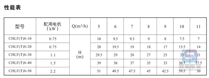 產品介紹 CHLF8-10LSWSC輕型臥式多級離心泵配加長軸電機采用了免修機械密封,緊湊式結構使泵尺寸很小,軸向入口和徑向出口。輕型段式多級離心泵的過流部件均采用不銹鋼材料(304或316)制成,輕型不銹鋼多級離心泵具有低噪音,耐輕腐蝕,外形美觀、體積小、重量輕、使用壽命長等特點,不同材質的硬質合金密封,保證了不同介質輸送均無泄漏;噪音低:兩個低噪音軸承下的水泵,運轉平穩(wěn),除電機微弱聲響,基本無噪聲;故障率低:結構簡單合理,整機無故障工作時間大大提高。采用國內優(yōu)秀水力模型優(yōu)化設計而成,是理想的新一代高效節(jié)能輕型臥式多級離心泵。采用了免修機械密封。輕型段式多級離心泵的過流部件均采用不銹鋼材料(304或316)制成,具有低噪音,耐輕腐蝕,外形美觀、體積小、重量輕、使用壽命長等特點。 二、應用范圍: 主要用于家庭型中央空調循環(huán)及工業(yè)上液體的傳輸。如脫礦物質水、軟水、凈化系統(tǒng)、輕油等的循環(huán)和增壓。 1)小型中央空調循環(huán) 2)冷卻系統(tǒng) 3)工業(yè)清洗 4)水處理(水的凈化) 5)水產養(yǎng)殖 6)施肥/計量系統(tǒng) 7)環(huán)境應用 三、工作條件: 稀薄、干凈、不凝、不爆炸、不含固體顆?;蚶w維的液體。 液體溫度: 常溫型-15℃至+70℃ 熱水型+70℃至+110℃ 最大環(huán)境溫度:+40℃ 最大運作壓力:10巴 最大進口壓力受最大運作壓力限制 介質酸堿性:PH4~9 四、輸送液體: 1、稀薄、清潔、不含固體顆?;蚶w維的非易燃易爆液體。 2、泵可以輸送諸如礦泉水、軟化水、純水、清油和其它輕化工介質。 3、當輸送液體的密度或粘度大于水,如需要,必須配用大功率電機。 4、泵是否適用于某一特定液體由多種因素決定,其中最重要的是氯含量、PH值、溫度和溶濟、油的含量等。 五、曲線條件: 下述條件適用于后面所示性能曲線。 1、所有曲線都基于電機在恒速2900rpm的測量值。 2、曲線容差符合ISO9906,附錄A。 3、測試采用20℃不含空氣的水,運動粘度為1mm2/s。 4、泵的使用參照加粗曲線的性能范圍,以防流量過小產生過熱和流量過大使電機過載等。 六、電機: CHLF8-40LSWSC輕油增壓泵電機為全封閉,風冷式二極電機 防護等級:IP55 絕緣等級:F 標準電壓, 50Hz: 1×220-240V 3×220-240V 380-415V ![]() 因產品生產批次、型號不同,產品圖片及安裝尺寸僅供參考,詳情可聯(lián)系我們的銷售人員了解更多CHLF8-10LSWSC輕型臥式多級離心泵相關信息!