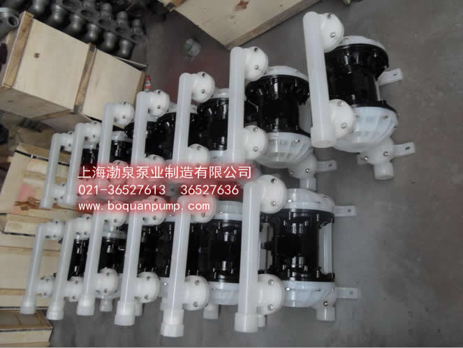 ![]() QBY-25工程塑料氣動(dòng)隔膜泵產(chǎn)品概述: QBY-25工程塑料氣動(dòng)隔膜泵采用壓縮空氣為動(dòng)力源,對(duì)于各種腐蝕性液體,帶顆粒的液體,高粘度、易揮發(fā)、易燃、劇毒的液體,均能予以抽光吸盡。隔膜泵根據(jù)不同液體介質(zhì)分別采用丁腈橡膠、氯丁橡膠、氟橡膠、聚四氟乙烯隔膜,以滿足不同用戶的需要。 耐腐蝕耐酸堿氣動(dòng)化工泵主要特點(diǎn): 1、不需灌引水,吸程高達(dá)7m,揚(yáng)程達(dá)50m,出口壓力≥6kgf/cm2; 2、流動(dòng)寬敞,通過性能好,允許通過最大顆粒直徑達(dá)10mm。抽送泥漿、雜質(zhì)時(shí),對(duì)泵磨損甚微; 3、揚(yáng)程、流量可通過氣閥開度實(shí)現(xiàn)無級(jí)調(diào)節(jié)(氣壓調(diào)節(jié)在1-7kgf/cm2之間); 4、該泵無旋轉(zhuǎn)部件,沒有軸封,隔膜將抽送的介質(zhì)與泵的運(yùn)動(dòng)部件、工作介質(zhì)完全隔開,所輸送的介質(zhì)不會(huì)向外泄漏。所以抽送有毒、易發(fā)揮或腐蝕性介質(zhì)時(shí),不會(huì)造成環(huán)境污染; 5、不必用電,在易燃、易爆場(chǎng)所使用安全可靠; 6、可以浸沒在介質(zhì)中工作; 7、作用方便、工作可靠、開停只需簡(jiǎn)單地打開和關(guān)閉氣體閥門,即使由于意外情況而長(zhǎng)時(shí)間無介質(zhì)運(yùn)行或突然停機(jī),泵也不會(huì)因此而損壞,不旦超負(fù)荷,泵會(huì)自動(dòng)地停機(jī),具有自我保護(hù)性能,當(dāng)負(fù)荷恢復(fù)正常后,又有自動(dòng)啟動(dòng)運(yùn)行; 8、結(jié)構(gòu)簡(jiǎn)單、易損件少,該泵結(jié)構(gòu)簡(jiǎn)單,安裝、維修方便,泵輸送的介質(zhì)不會(huì)接觸到配氣閥,聯(lián)桿等運(yùn)動(dòng)部件,不象其他類型的泵因轉(zhuǎn)子、活塞、齒輪、葉片等部件的磨損而使性能逐步下降; 9、可輸送較粘的液體(粘度在1萬厘泊以下); 10、本泵無須用油潤(rùn)滑,即使空轉(zhuǎn),對(duì)泵也無任何影響,這是該泵一大特點(diǎn)。 主要用途: 1、泵吸花生醬、泡菜、土豆泥、小紅腸、果醬蘋果漿、巧克力等。 2、泵吸油漆、樹膠、顏料。 3、粘合劑和膠水、全部種類可用泵吸取。 4、各種瓦、瓷、磚器及陶器釉漿。 5、油井鉆好后,用泵吸沉積物及灌漿。 6、泵吸各種乳劑和填料。 7、泵吸各種污水。 8、用泵為油輪,駁船清倉吸取倉內(nèi)污水。 9、啤酒花及發(fā)酵粉稀漿、糖漿、糖密。 10、泵吸礦井、坑道、隧道、選礦、礦渣中的積水。泵吸水泥灌漿及灰漿。 11、各種橡膠漿。 12、各種磨料、腐蝕劑、石油及泥漿、清洗油垢及一般容器。 13、各種劇毒、易燃、易揮發(fā)液體。 14、各種強(qiáng)酸、強(qiáng)堿、強(qiáng)腐蝕液體。 15、各種高溫液體最高可耐150℃。 材質(zhì):鑄鐵、鋁合金、不銹鋼、工程塑料、 隔膜材質(zhì):丁晴膠、F46 型號(hào):QBY-10、QBY-15、QBY-25、QBY-40、QBY-50、QBY-65、QBY-80、QBY-100。16、作為各種固液體分離設(shè)備的前級(jí)送壓裝置。 QBY-25工程塑料氣動(dòng)隔膜泵 耐腐蝕耐酸堿氣動(dòng)化工泵性能參數(shù):