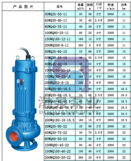 | WQ高揚程潛水排污泵選用二級電機揚程可達100米 | ||||||||||||||||
