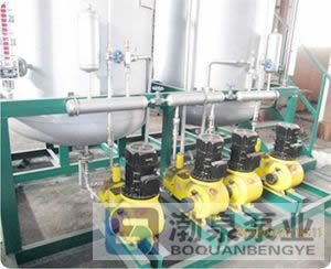 進/出水閥和泵頭的連接螺紋不能使用生料帶纏繞;要確保吸液閥及排液閥內干凈。 泵減速箱是否有足夠的潤滑油并達到油標上限,上限為觀察窗的中線位置;正常工作時也要保證油面處于觀察窗的中線位置;至少每年更換一次潤滑油(渦輪蝸桿油),推薦的型號:MONARCH®EP320,如不能購買到推薦的型號,客戶可選擇尾號為EP320的任何一種渦輪蝸桿油。 出口管路壓力一定要高于出口管路壓力,否則會產生虹吸。 建議安裝安全閥及脈沖阻尼器等。檢查系統(tǒng)連接、安裝與支撐是否正確、牢固,不允許管路的重量作用在泵上,截止閥和止回閥、安全閥、Y型過濾器安裝方向應正確。脈沖阻尼器應當用支撐件固定,管道與泵連接后應復查泵的原找正度,當發(fā)現(xiàn)管道連接引起偏差時,應調整管道。 對計量泵進行流量標定,實際使用中由于條件改變,實際流量和銘牌流量不一致是正常的。如果現(xiàn)場要求比較高,可在入口處通過加藥罐單位時間的見少量進行標定,并記錄標定結果,在正式運行時以標定的結果來對計量泵進行百分比設定。 運行試驗:空載啟動泵并檢查電壓、電流及泵的運轉狀態(tài)(包括計量泵電機轉速、啟動電流、電機發(fā)熱、漏液及計量泵的震動和噪音等),如果發(fā)生異常情況,應及時處理。 在額定負載下進行負載試驗,觀測計量泵的運轉情況,觀測并記錄壓力、轉速、噪音及震動情況,有無泄漏等,如果發(fā)現(xiàn)異常情況,應及時處理。 上海渤泉泵業(yè)始終堅持“以世界高新技術為先導,國際先進水平為目標,向科技求發(fā)展,向質量求生存,向信譽求市場,向管理求效益”的發(fā)展方針。渤泉泵業(yè)誠懇邀請八方商客蒞臨參觀指導,共創(chuàng)共贏!