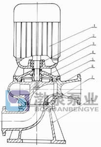 該系列泵具有兩種結構形式,一是電機與泵直接同軸,二是采用聯(lián)軸器聯(lián)接,電機采用標準立式電機。其結構如圖所示,每種結構具有兩種底座連接形式,一是進口水平吸入,具有轉角功能。