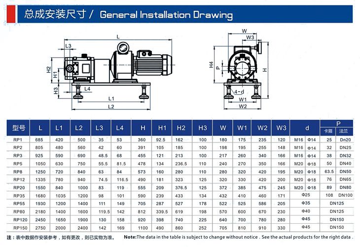 RP8 | 0.35 | 0.85~8 | 40~450 | 1.8 | 1~1000000 | 2.2~11 | 5.5 | 63.5 | DN50 |